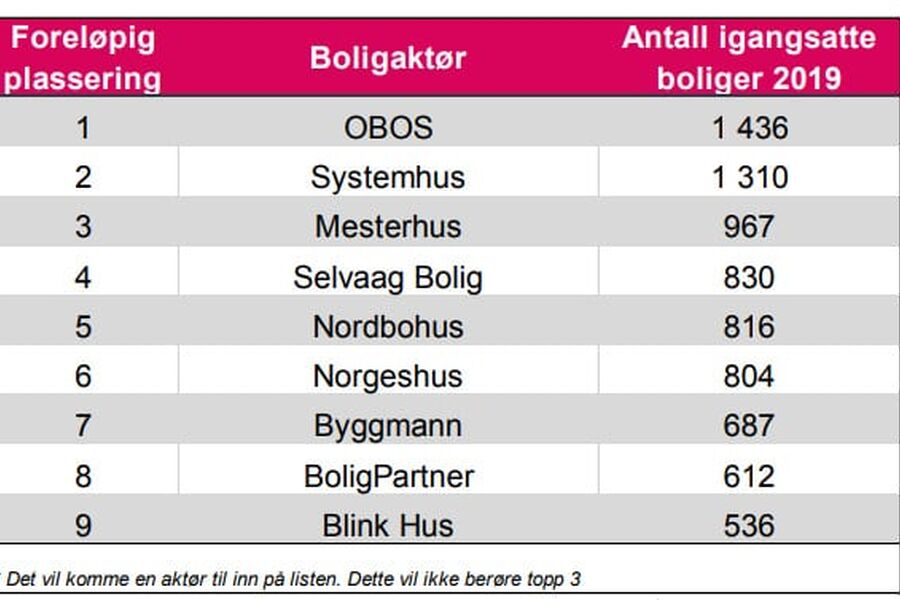 10 på topp i boligbygging i 2019