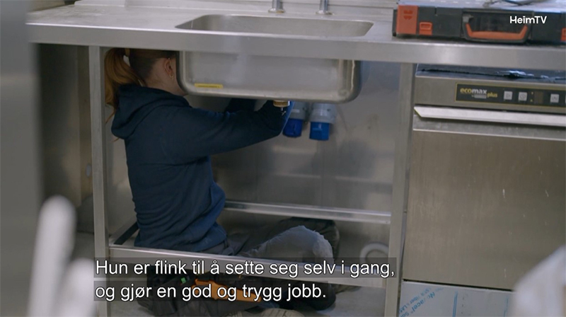 - Det er alltid noe nytt å lære, og det liker jeg,» sier Mari. «Jeg kjeder meg fort, så det passer meg perfekt. Jeg gikk først bygg og anlegg med tanke på å bli maler, men det traff ikke helt. Jeg begynte å lese meg opp på andre fag og landet på rørlegger. Det virket mest spennende. Så ringte jeg Østerhus Rør, og heldigvis hadde de plass til meg.