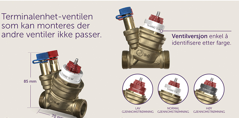 – TA-Nano Plus er markedets minste og mest kompakte ventil i sin klasse. Den er spesielt utviklet for installasjoner der plassen er begrenset, som i viftekonvektorer og fordelerskap. Den nye ventilen ervidereutviklet fra velprøvd teknologi som vår Compact P-plattformen, sier Michael Jacobsen, Product Manager i IMI.