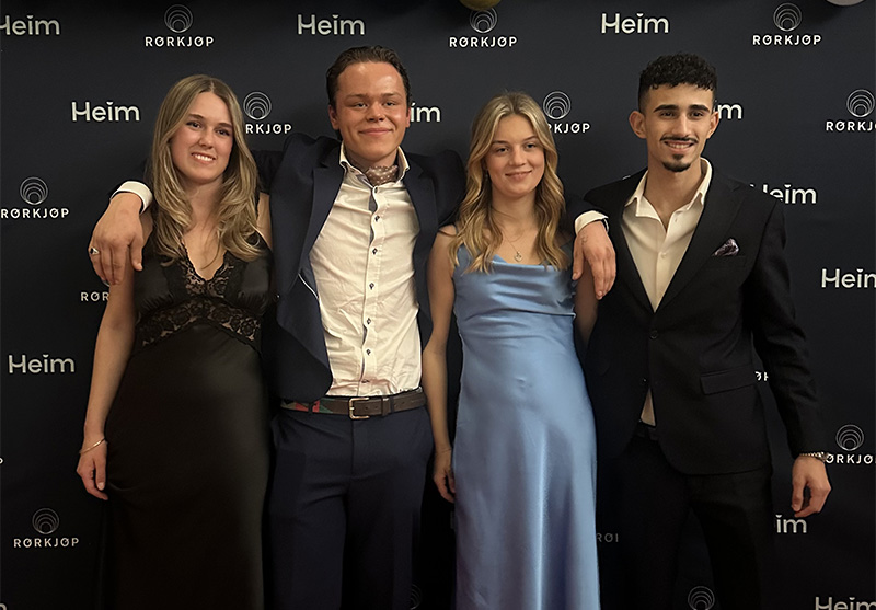 Her er de fire lærlingene i serien samlet på den røde løperen. Fra venstre Ida, Vegar, Mari, og Adam.